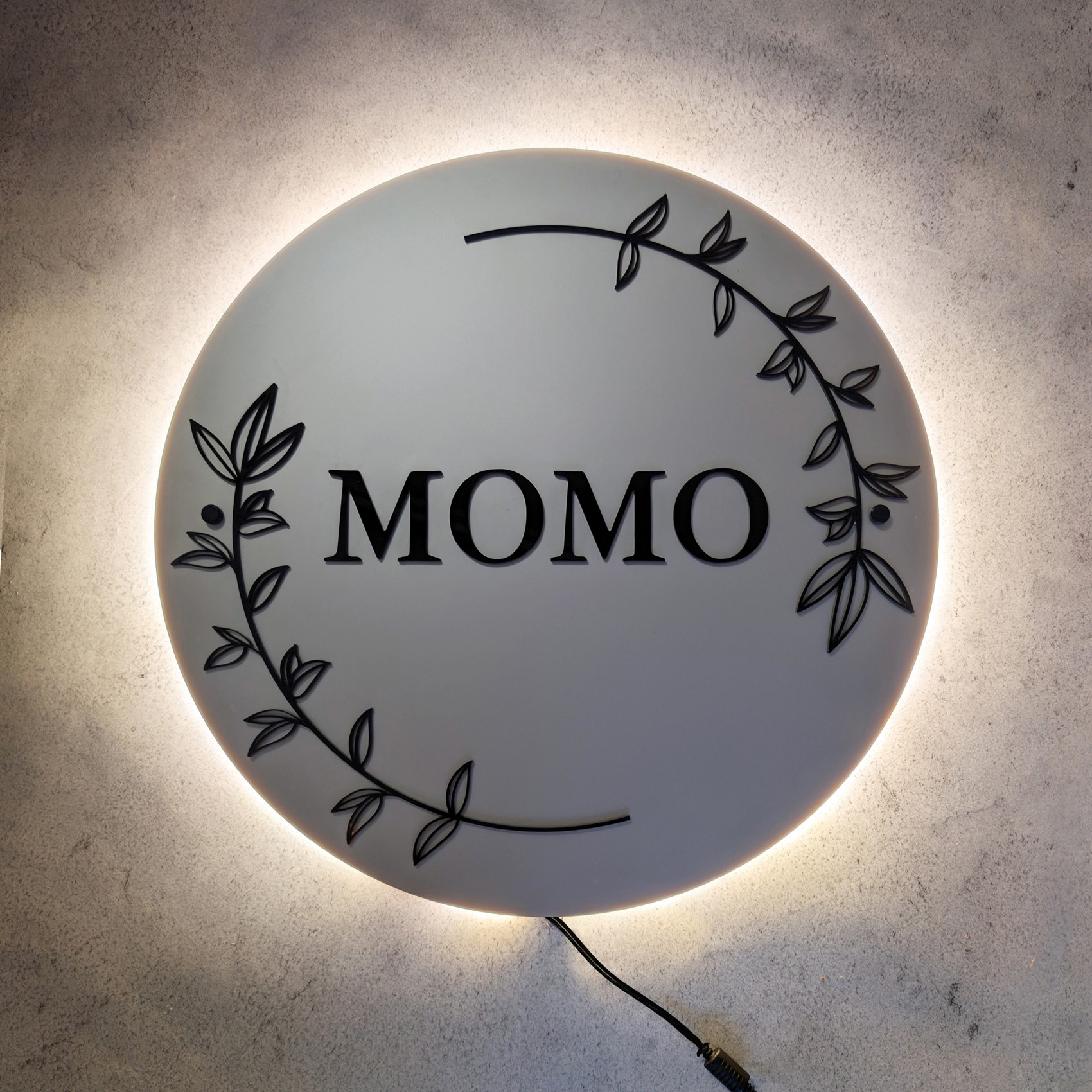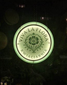 Logo zostało dostosowane do indywidualnych potrzeb klienta. Do logo dodano tył z pleksi, aby umożliwić jego powieszenie w oknie.