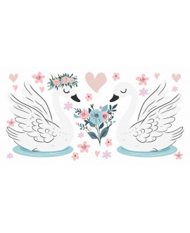 Naklejka na ścianę dla dzieci zakochane łabędzie kwiaty serduszka studiograf