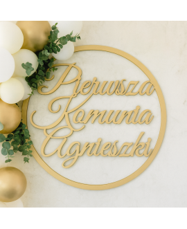 Obręcz Komunia koło dekoracja z pleksi personalizowana